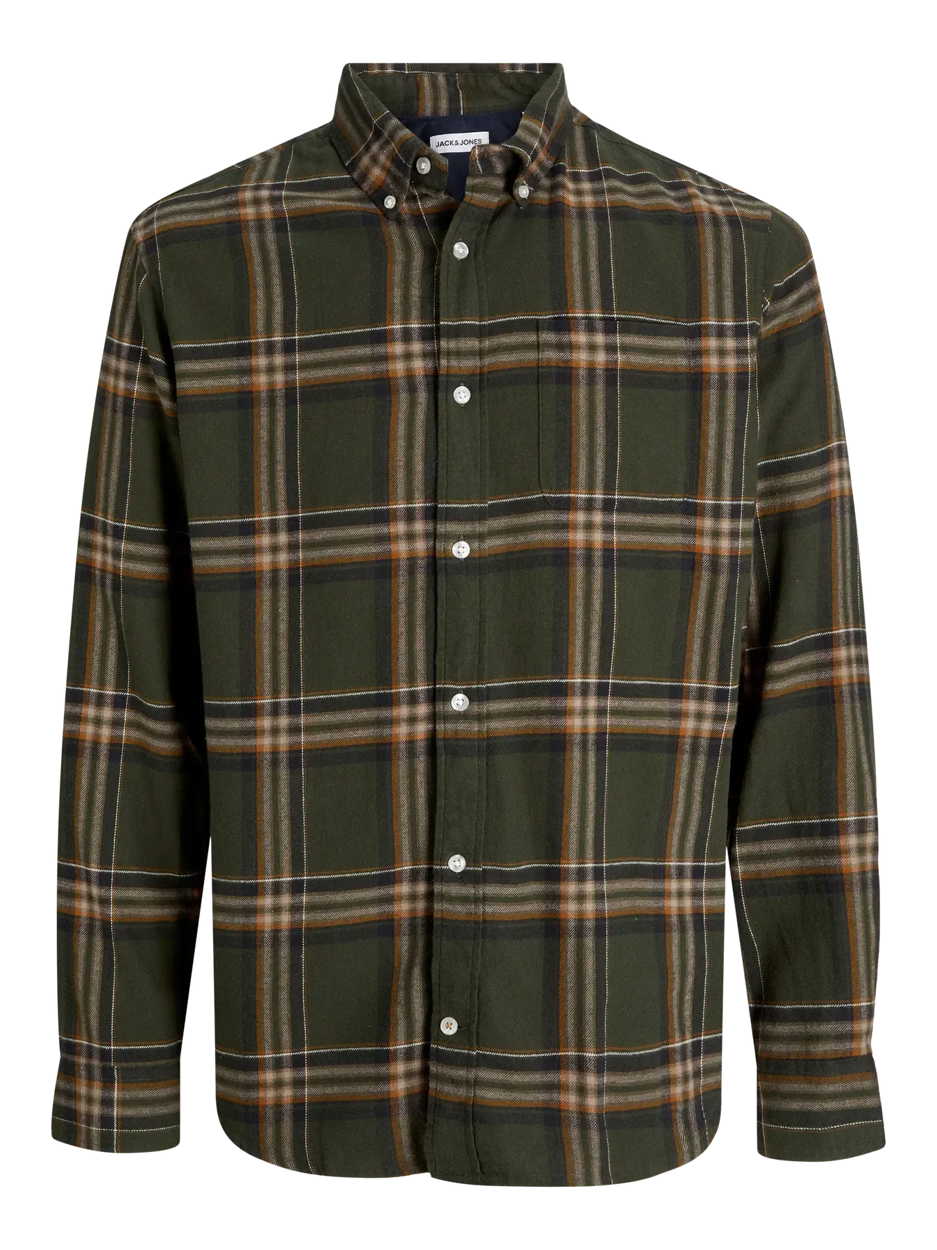 Camisa Cuadros Classic Flannel Jack & Jones. Renueva tu armario con esta camisa de franela clásica, diseñada para un estilo atemporal y un uso diario cómodo. Confeccionada en twill, un tejido resistente y con patrón característico en “V” o “W”, ofrece durabilidad y un acabado sofisticado que nunca pasa de moda.