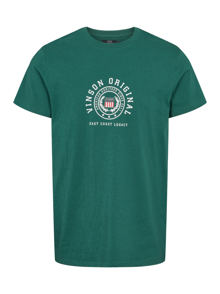 Camiseta Logo Stevie Vinson-East Coast Legacy. Captura la esencia del estilo preppy de la costa este con esta camiseta Vinson. Un básico indispensable que destaca por su logotipo circular "East Coast Legacy", ideal para quienes buscan un diseño limpio, equilibrado y con un toque de herencia deportiva americana.